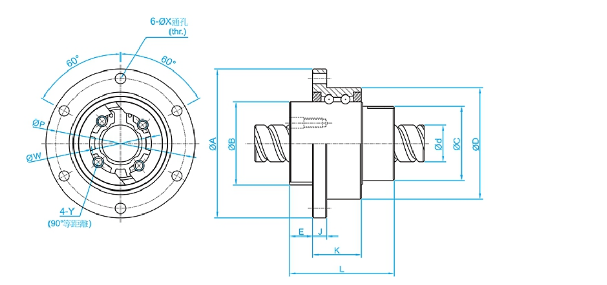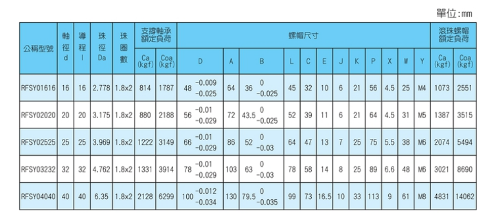台湾TBI螺帽旋转式滚珠丝杆RFSY系列可以加预压由于预压力可使轴向间隙达到负值进而得到较高的刚性(滚珠丝杠内通过给滚珠加预压力在实际用于机械装置等时由于滚珠的斥力可使丝母部的刚性增强),高寿命。