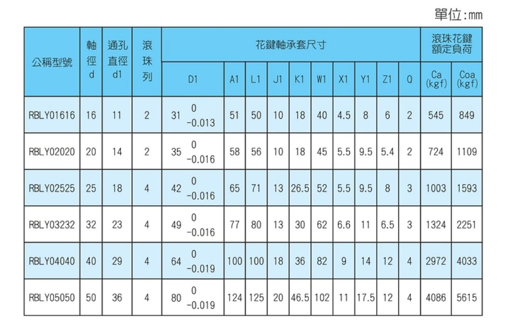 TBI精密滚珠丝杆花键RBLY系列是螺杆跟花键的结合一体式,TBI滚珠丝杆的丝杠轴与螺母之间以滚珠滚动方式实现滚动摩擦,与过去的滑动丝杠相比驱动扭矩降低到1/3以下。 花键轴是根据其外观来命名的在轴的外表有纵向的键槽,套在轴上的旋转件也有对应的键槽,可保持跟轴同步旋转。